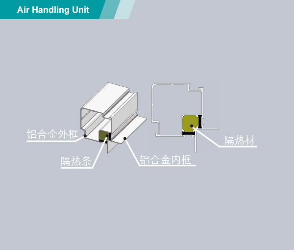 必一运动新一代MAH组合式空气处理机,艾洛斯(Aiolos)系列,采用防冷桥铝合金框架结构设计,面板与框架为压扣连接方式。
